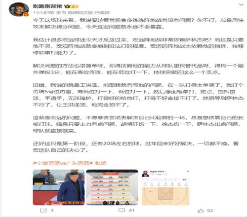 首败宁波朱芳雨抓耳挠腮!大V道出广东症结批判杜锋仍存1利好